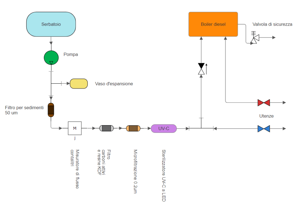 L’impianto idrico del nostro van è abbastanza semplice avendo poche utenze: